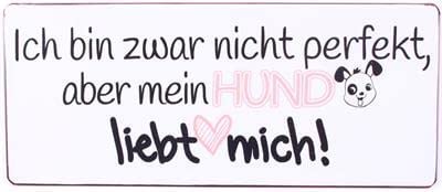 Blechschild Retro Schild Vintage Shabby Style Wandschild 30,5x12,8cm Aufdruck - Thema Hund - Ich Bin zwar Nicht perfekt, Aber Mein Hund liebt Mich!