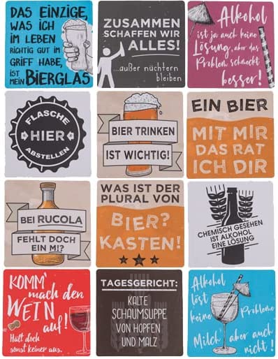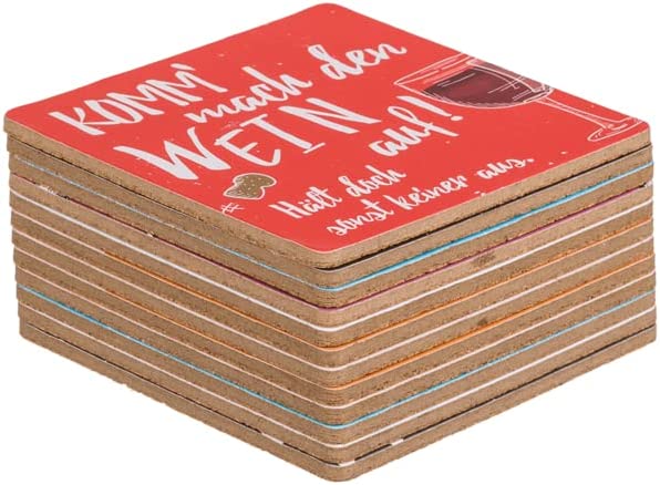 Bierdeckel Untersetzer 12tlg. aus Pappe/Kork - Sprüche-Set 9,5 x 9,5 c