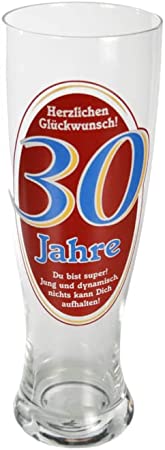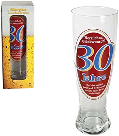 Bierglas Bierhumpen Maßkrug Weizenbierglas mit Aufdruck zum Geburtstag - Herzlichen Glückwunsch 30 Jahre