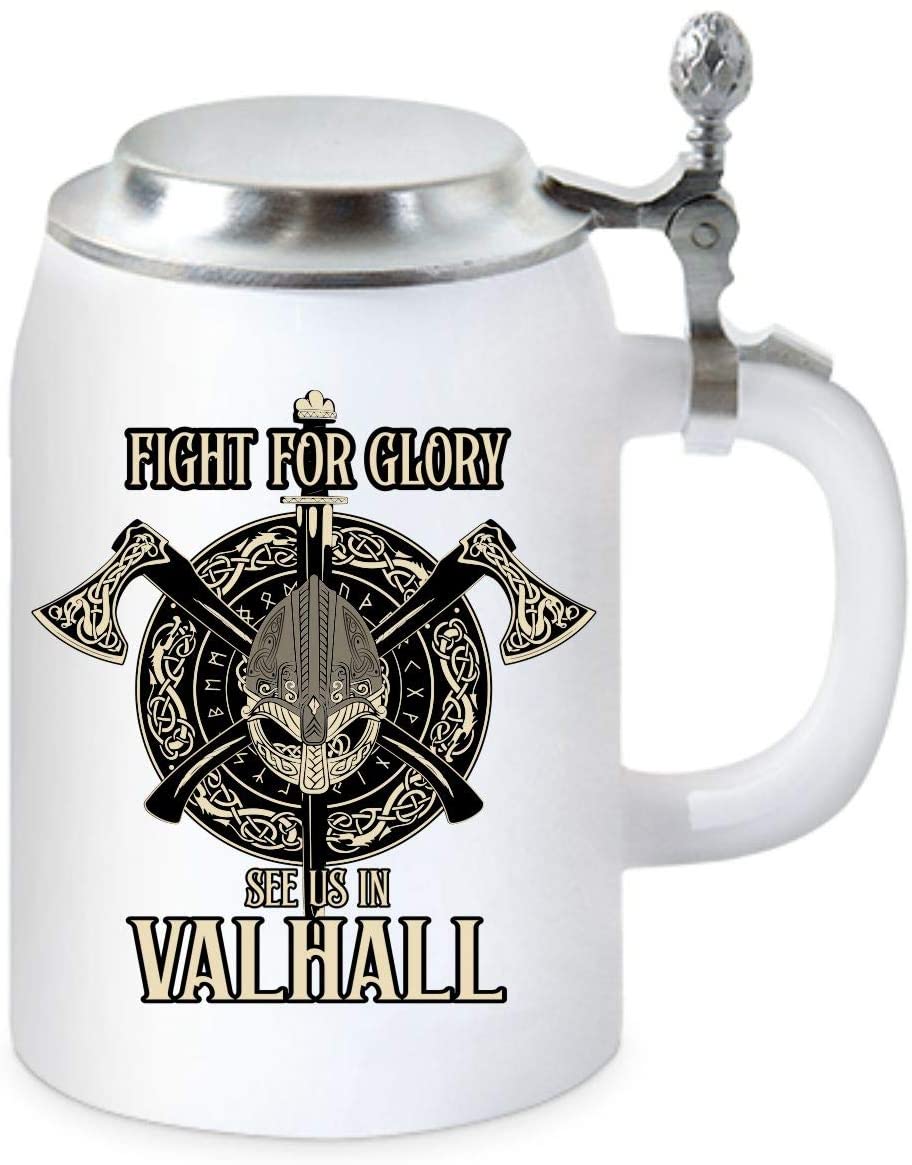 Bierkrug 0,5L Keramik mit Flachdeckel - Wikinger - Fight for Glory