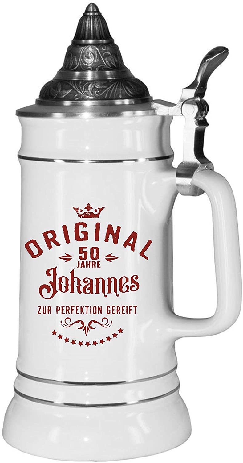 ✅ Bierkrug mit Spitzdeckel mit hochauflösendem Aufdruck - Farbe weiß - Fassungsvermögen 0,7Liter