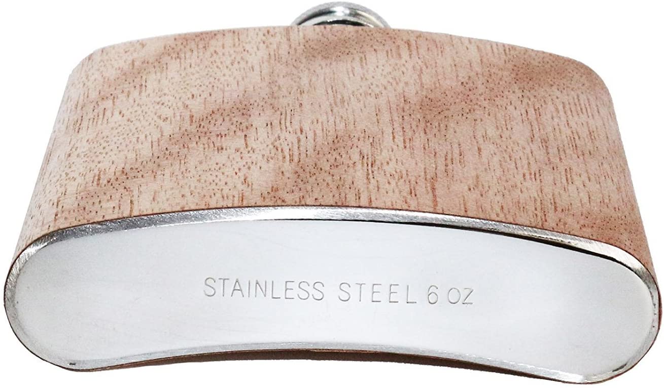 • Flachmann aus Edelstahl mit Holzfurnier ummantelt - Fassungsvermögen 6oz - ca. 177ml