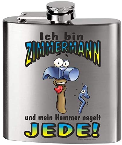 Flachmann Metall - Bedruckt anstelle Gravur - für den Beruf Zimmermann
