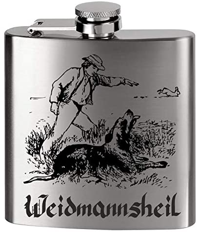 Flachmann Metall - Bedruckt anstelle Gravur - für den Jäger & Jagdt Fan - Weidmannsheil Jäger mit Hund