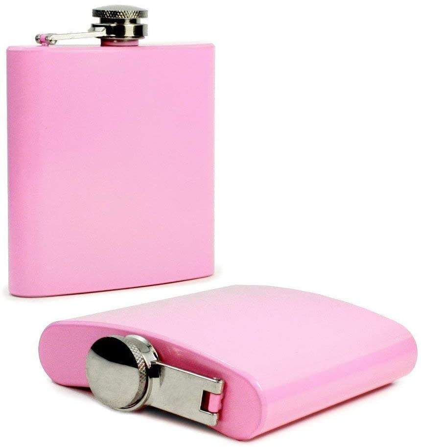 Flachmann Taschenflachmann Taschenflasche - Flachmann aus Edelstahl PINK glänzend lackiert - Hip Flask 6oz Für Alkohol Whisky/Vodka/Gin - Rosa