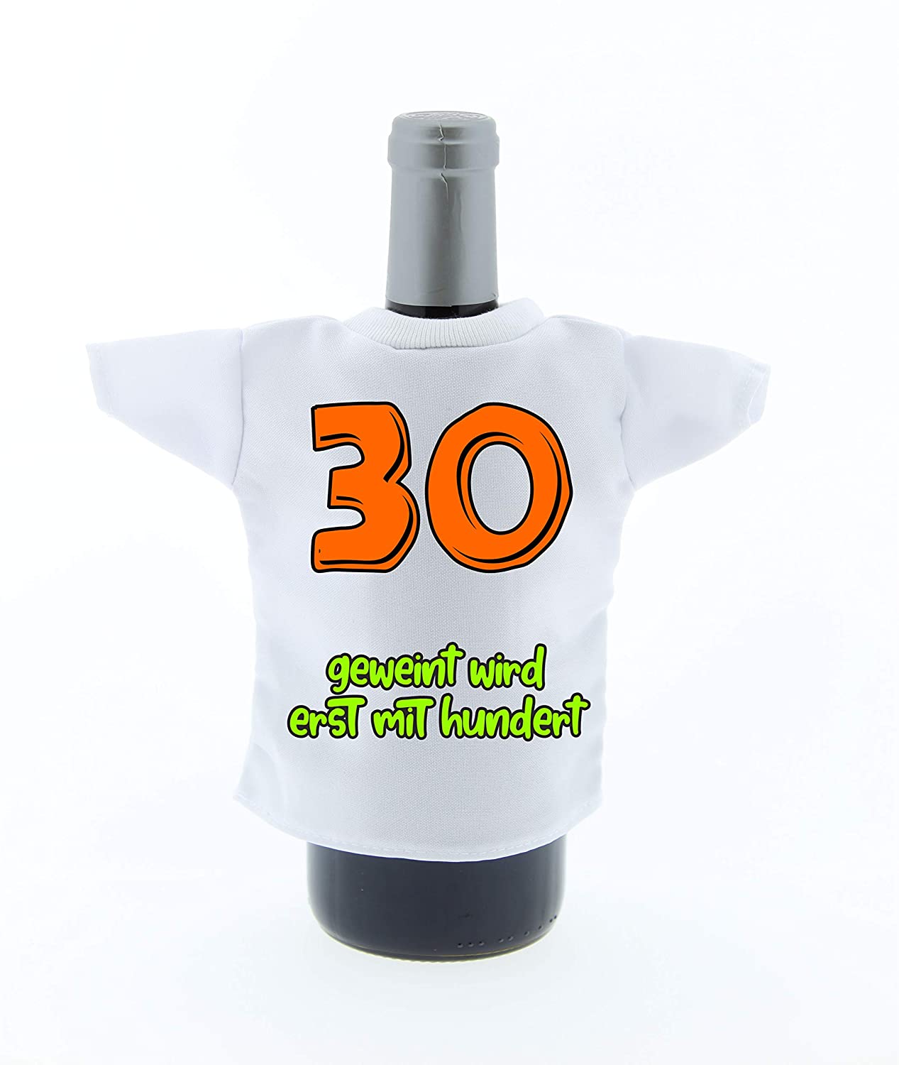 Flaschen Deko Mini Tshirt zum Geburtstag mit Aufdruck 30 geweint Wird erst mit Hundert