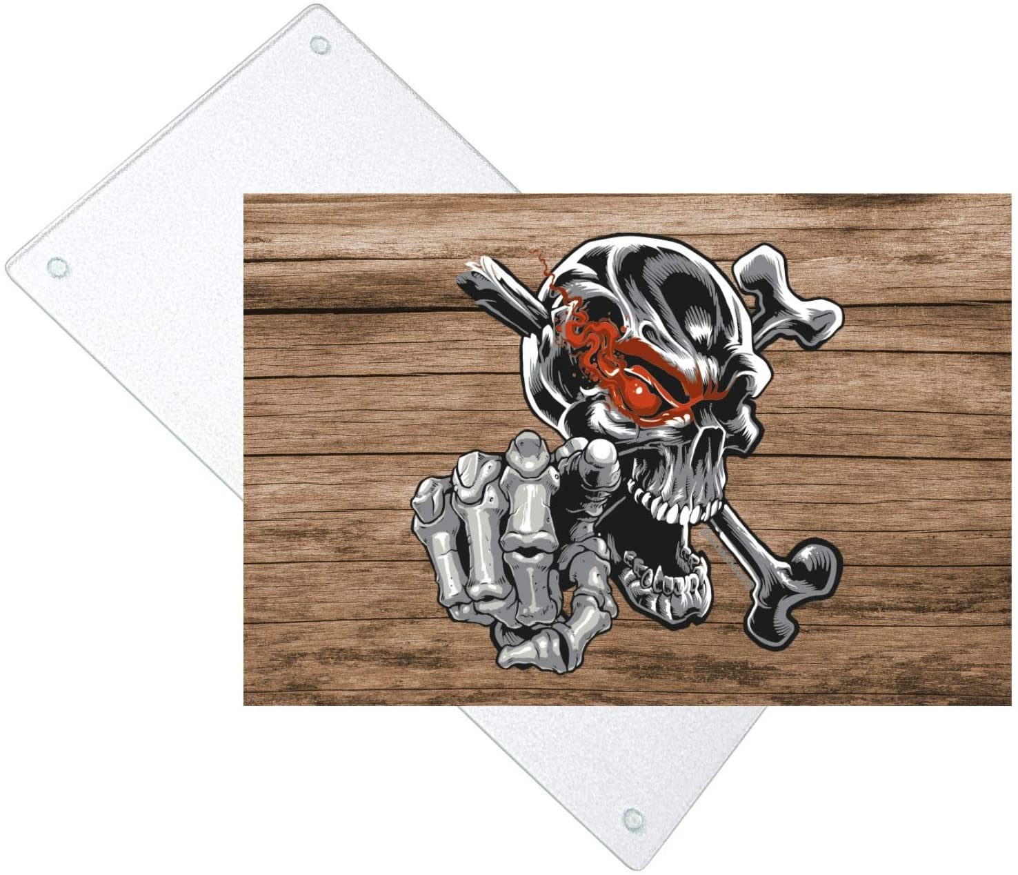Glasunterlage Glasschneidebrett Schneidebrett aus Glas für den begeisterten Wikinger Viking Fan - Größe 28,5 x 20 cm (Holzoptik-braun, Skull)