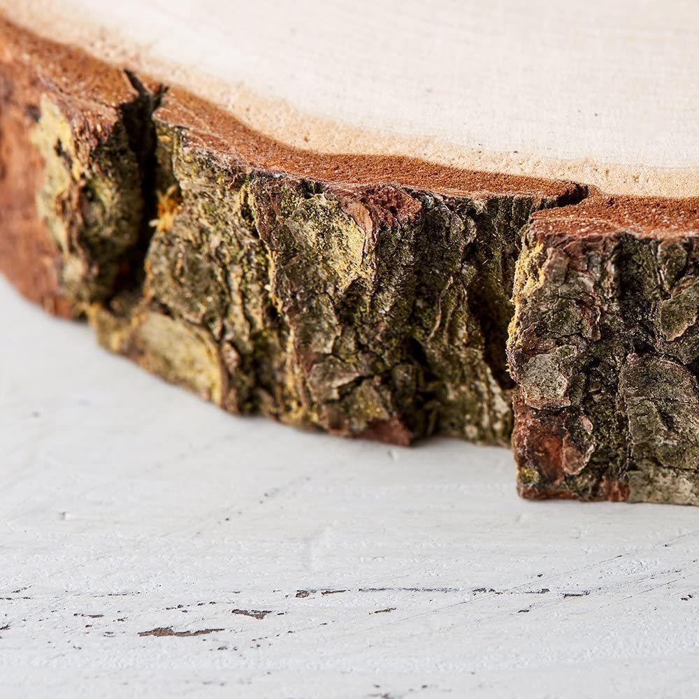 DEKORATIVE BAUMSCHEIBE: mit hochwertigem farbigen Aufdruck und Bohrung zum aufhängen der Baumscheibe. Die unbehandelte Echtholz-Baumscheibe samt Rinde ist ein hochwertiger Dekorations-Artikel. Die natürliche Beschaffenheit strahlt eine ganz besondere Qualität aus.