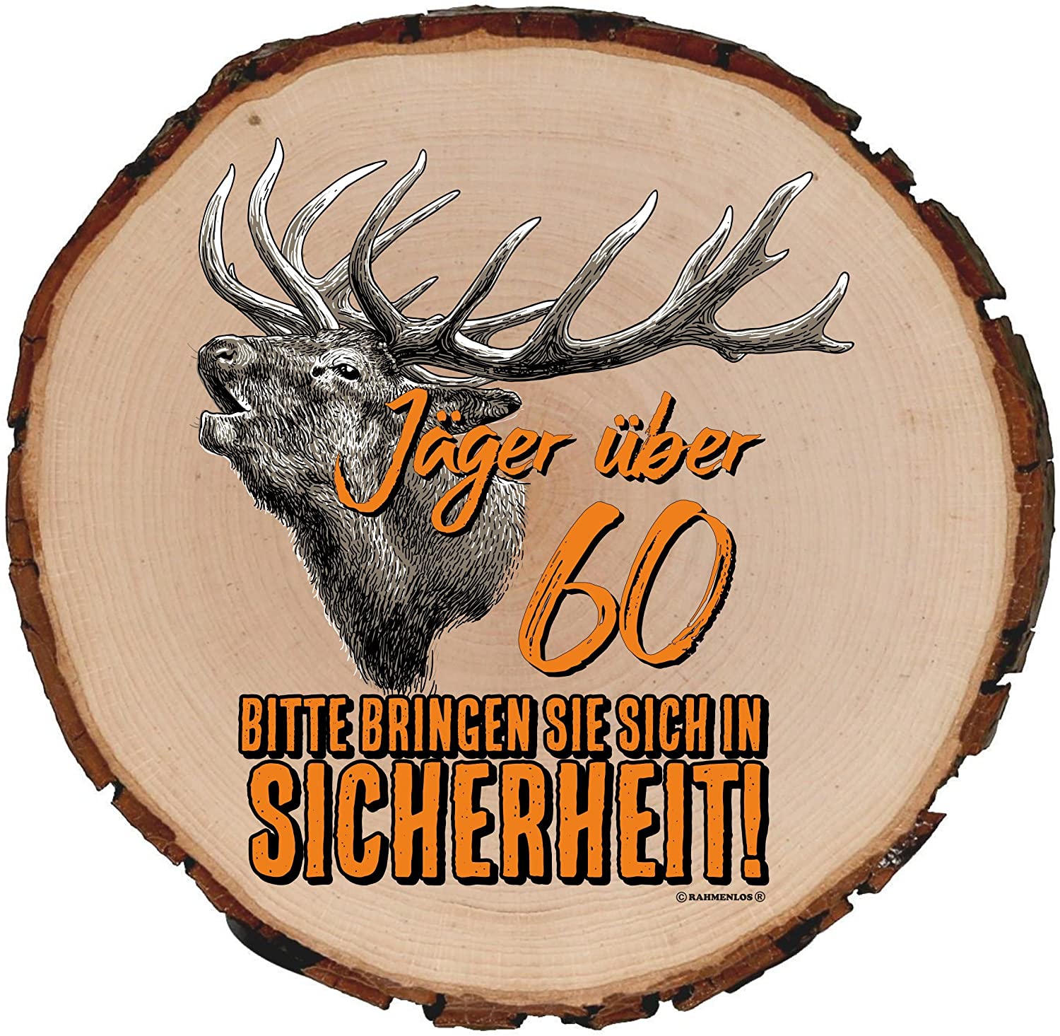Holzscheibe Baumscheibe bedruckt - hochwertig farbiger Aufdruck - Jäger und Jagdt - Jäger über 60 Bitte bringen Sie sich in Sicherheit