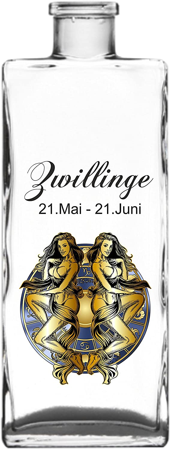 Leerflasche Glasflasche Schnapsflasche Bedruckt anstelle Gravur - 500ml flach incl. Verschluss - Horoskop BZW. Sternzeichen - Zwillinge