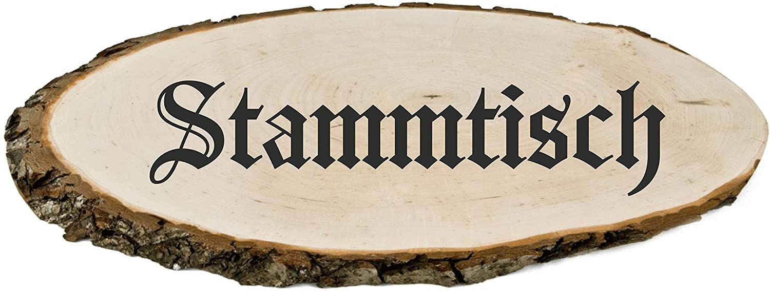 Rindenbrett oval aus Erle ca. 40cm - hochwertig farbig Bedruckt - Verschiedenste Text und auch Wunsch-Texte möglich (ca. 40cm, Stammtisch)