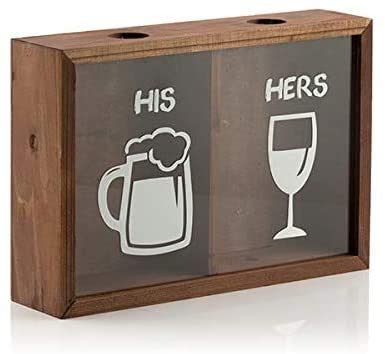 Sammelbox - Getränkedeckelsammler aus Holz für Kronkorken und Weinkorken, 29x20x7cm - Zwei getrennte Fächer HIS & Hers