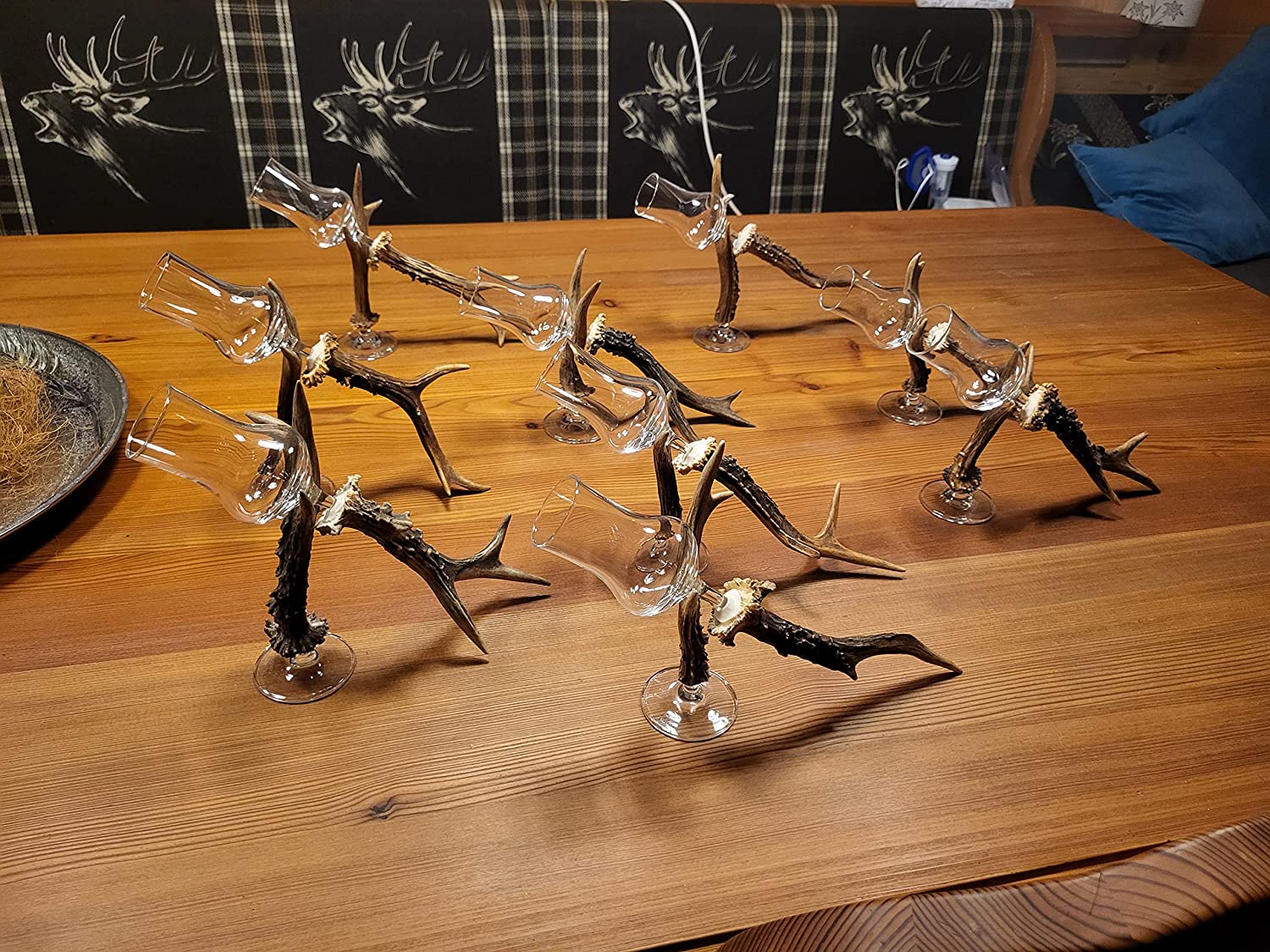 Schnapsgläser Grappagläser Griff und Ständer aus echtem Geweihstangen Abwurfstangen von Hirsch und Reh