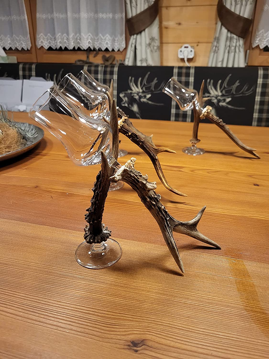 👀 Hingucker: SCHNAPSGLAS Halter 2teilig - Der Hingucker schlecht hin - Der Glashalter und Ständer gefertig aus echten Abwurfstangen Geweihstangen von Hirsch oder Reh - ist ideal für Stunden mit guten Freunden zum anstoßen. Die klassische, stabile Form sieht toll aus in jeder Bar oder Küche