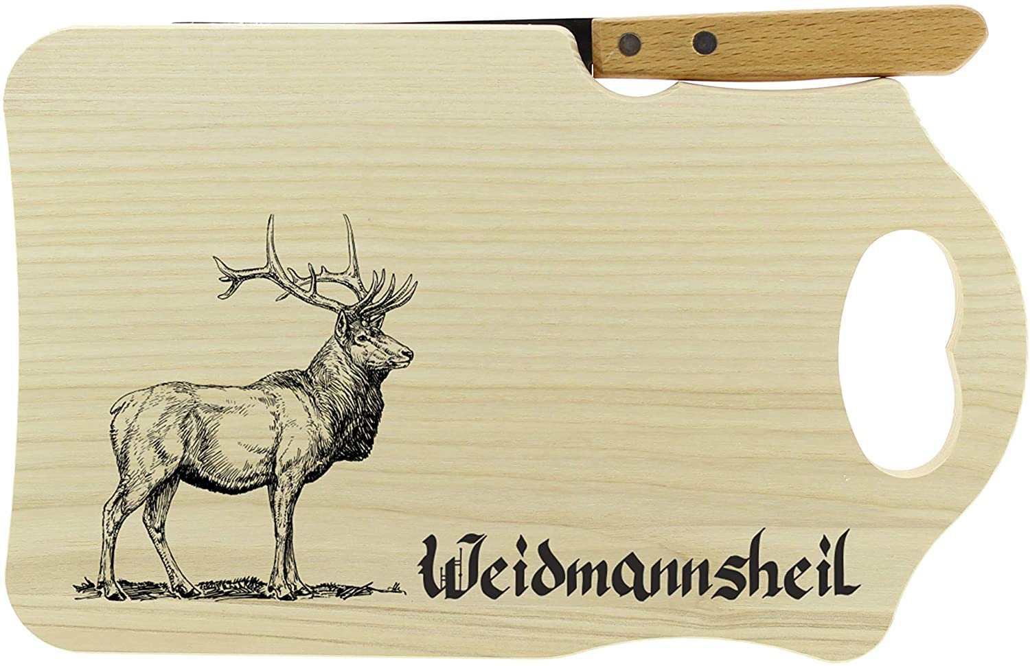 Schneidbrett + Messer + Gravur für den Jäger - Weidmannsheil Hirschmotiv