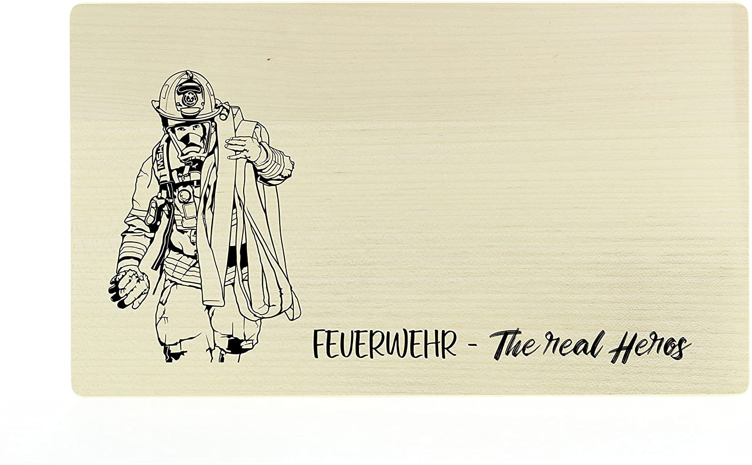 ✅ Graviertes Schneidbrett - Für Feuerwehrleute - Feuerwehrmann Motiv mit Schriftzug Feuerwehr - The real Heros