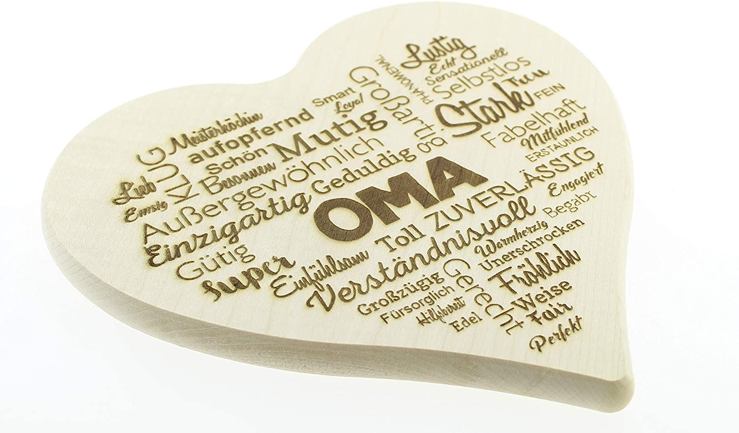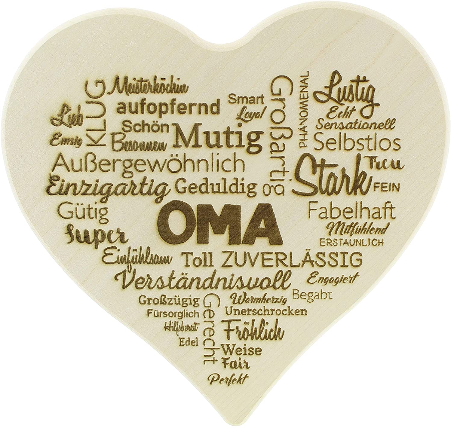 ✅ Graviertes Schneidbrett in Herzform mit Motiv „Herz aus Worten“ und lieben Komplimenten für alle Oma`s