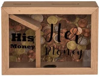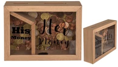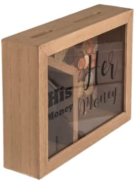 🌸 Schön gestaltete Spardose in Form eines naturfarbigen Bilderrahmens mit Aufdruck "His Money & Her Money"