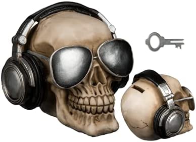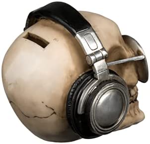 • Spardose in Form eines Totenkopfes mit Kopfhörer