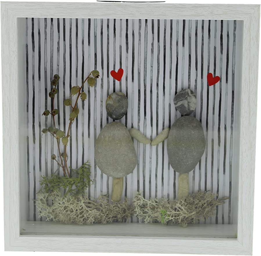 Steinbild Liebe Kieselbild Partnerschaft - Handmade und UNIKAT - Bilderrahmen mit Steinmotiv zum Thema Liebe & Partnerschaft