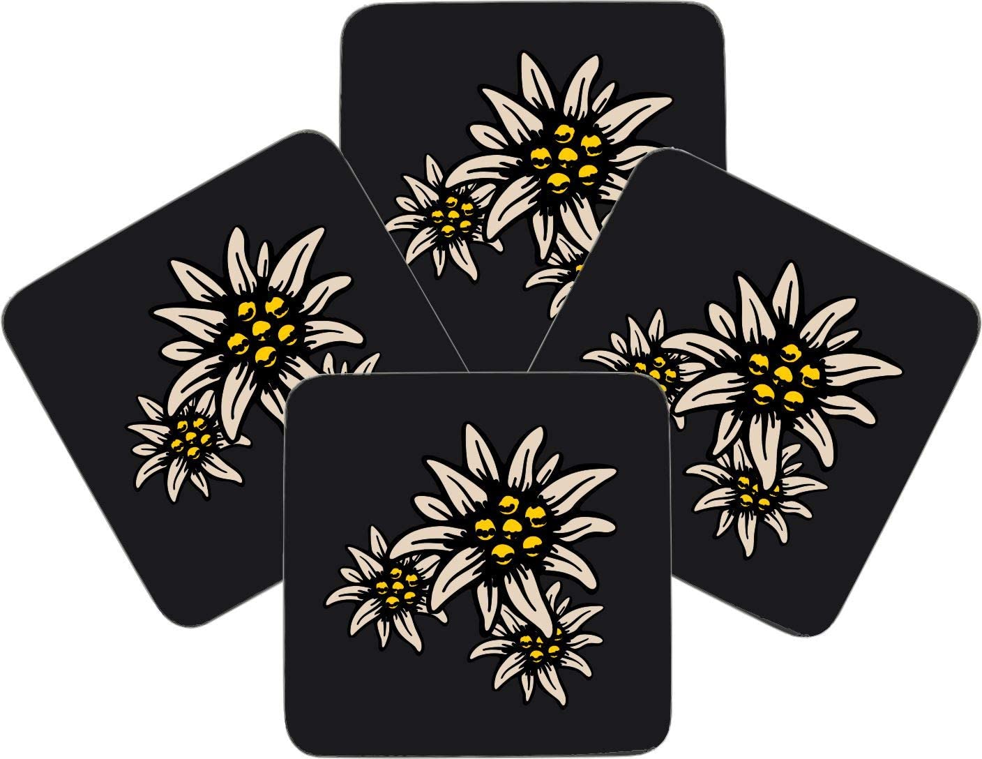 Untersetzer MDF/Kork - Bedruckt - 4er-Set - MDF-Platte 9,5cmx9,5cm - mit Korkrückseite zum Schutz - für den Alpinisten - Edelweis