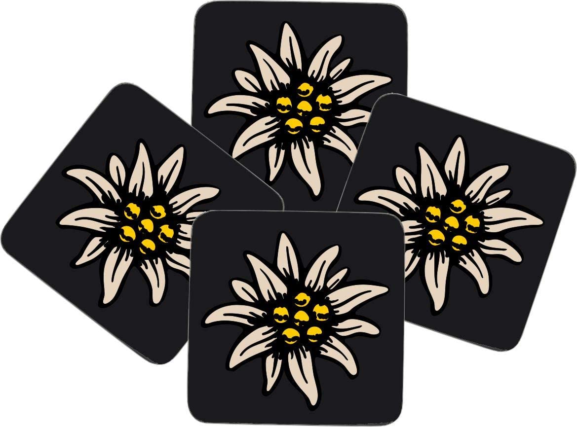Untersetzer MDF/Kork - Bedruckt - 4er-Set - MDF-Platte 9,5cmx9,5cm - mit Korkrückseite zum Schutz - für den Alpinisten - Edelweis